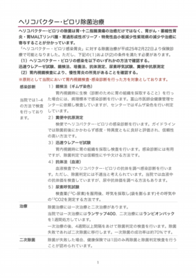 「ヘリコバクター・ピロリ感染胃炎」に対する除菌治療が平成25年2月22日より保険診療で可能となりました。