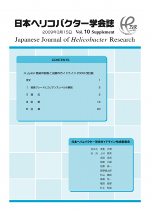 ヘリコバクター・ピロリの診断および治療については日本ヘリコバクター学会より「H.pylori感染の診断と治療のガイドライン 2009 改訂版」が発行されています。