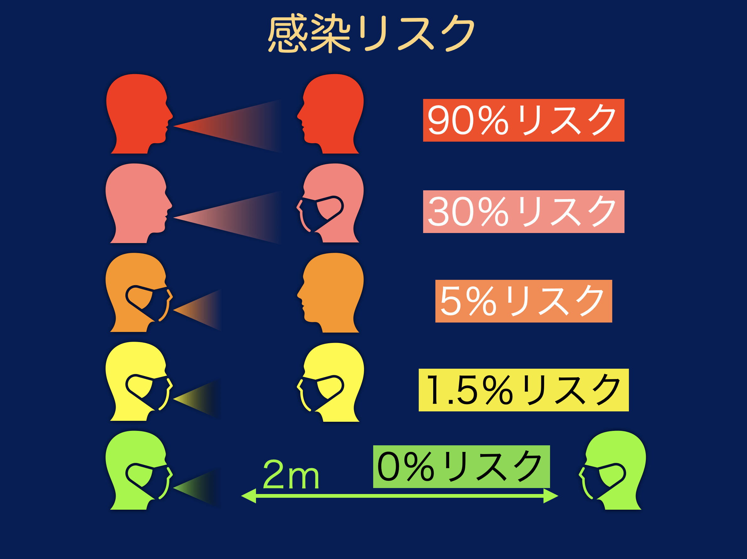 人と接触する場合には、いつでもコロナウイルスの感染リスクを評価した行動が重要です。